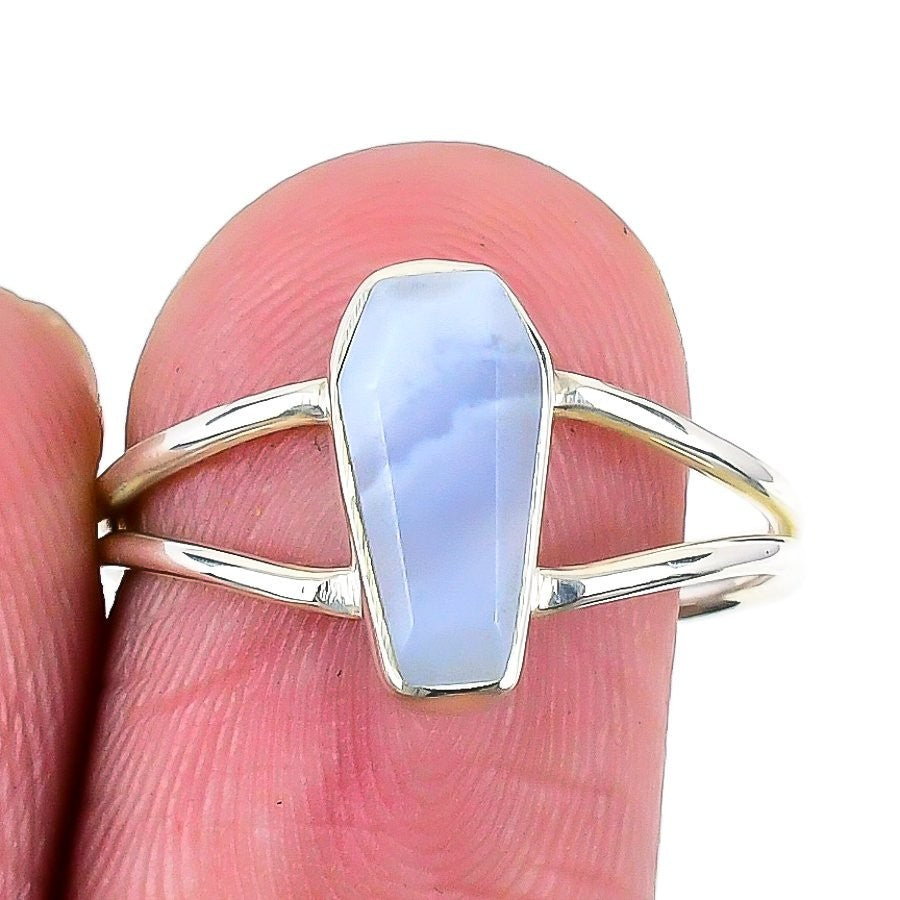 Third Eye Chakra Natural Blue Lace Agate 925 Sterling Silver Wife Statement Ring