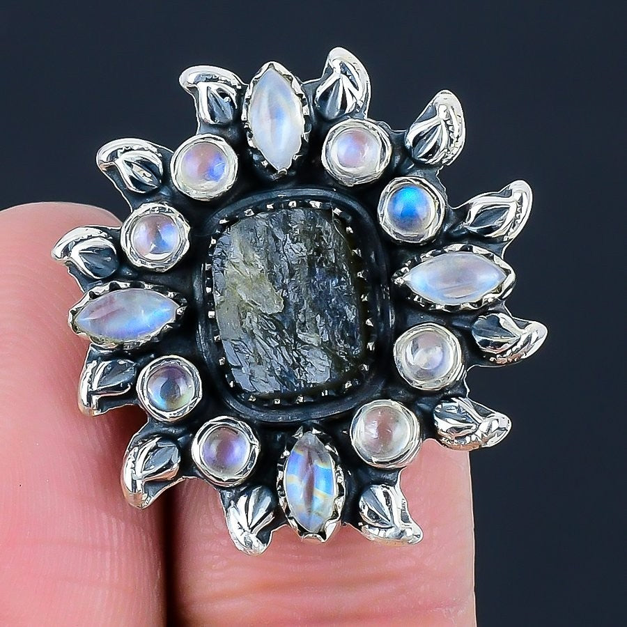 Third Eye Chakra Natural Labradorite 925 Silver Statement Daughter Ring Jewelry