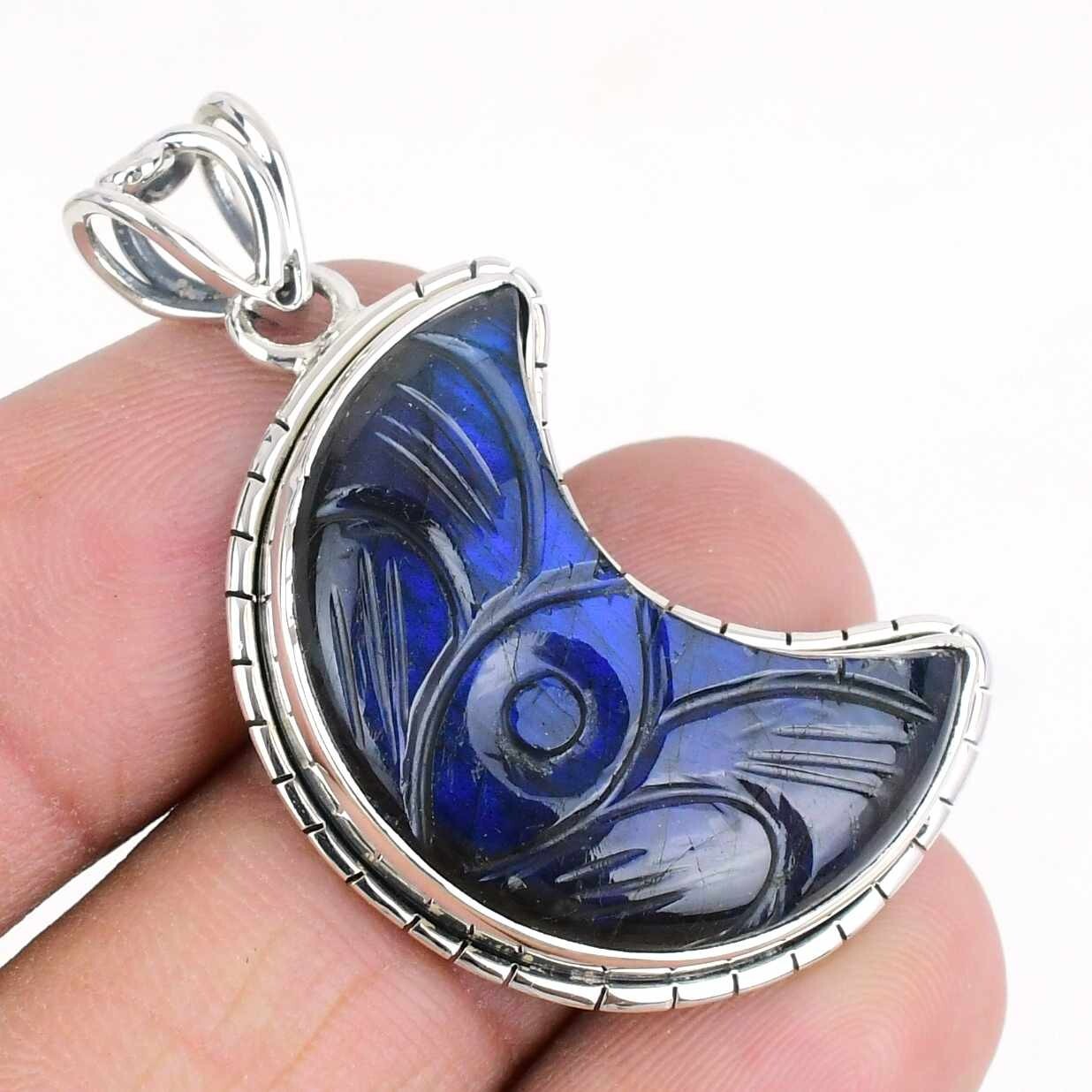Third Eye Chakra Natural Labradorite Carving Daughter Pendant Jewelry 925 Silver
