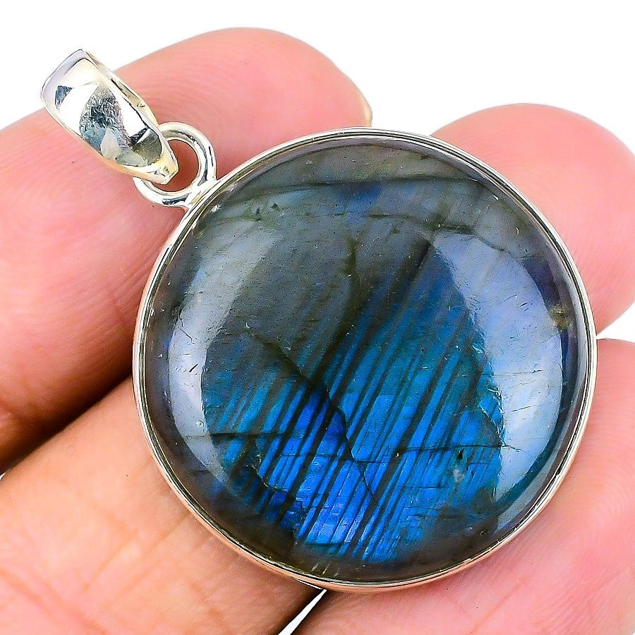 Third Eye Chakra Natural Labradorite Solid Silver Anniversary Wedding Pendant