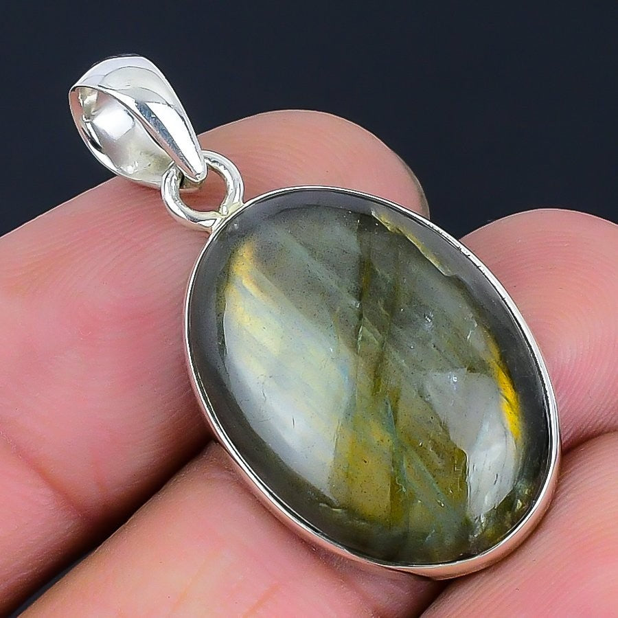 Third Eye Chakra Natural Labradorite Solid Silver Sister Trendy Pendant Jewelry