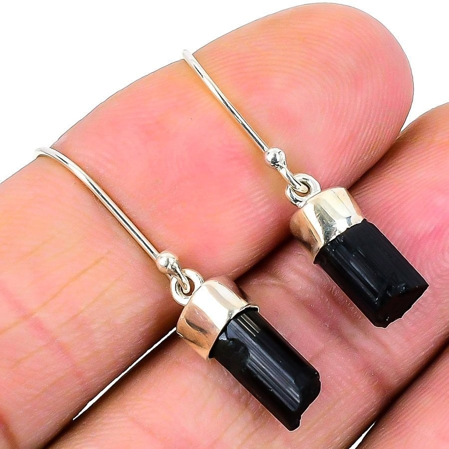 Throat Chakra Black Kyanite Stone Solid Silver Drop Best Daughters Gift Earrings