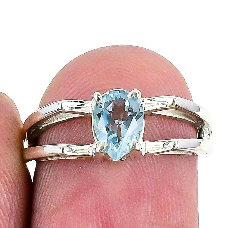 Throat Chakra Blue Topaz Stone Solid Silver Statement Friend Gift Ring Size 6