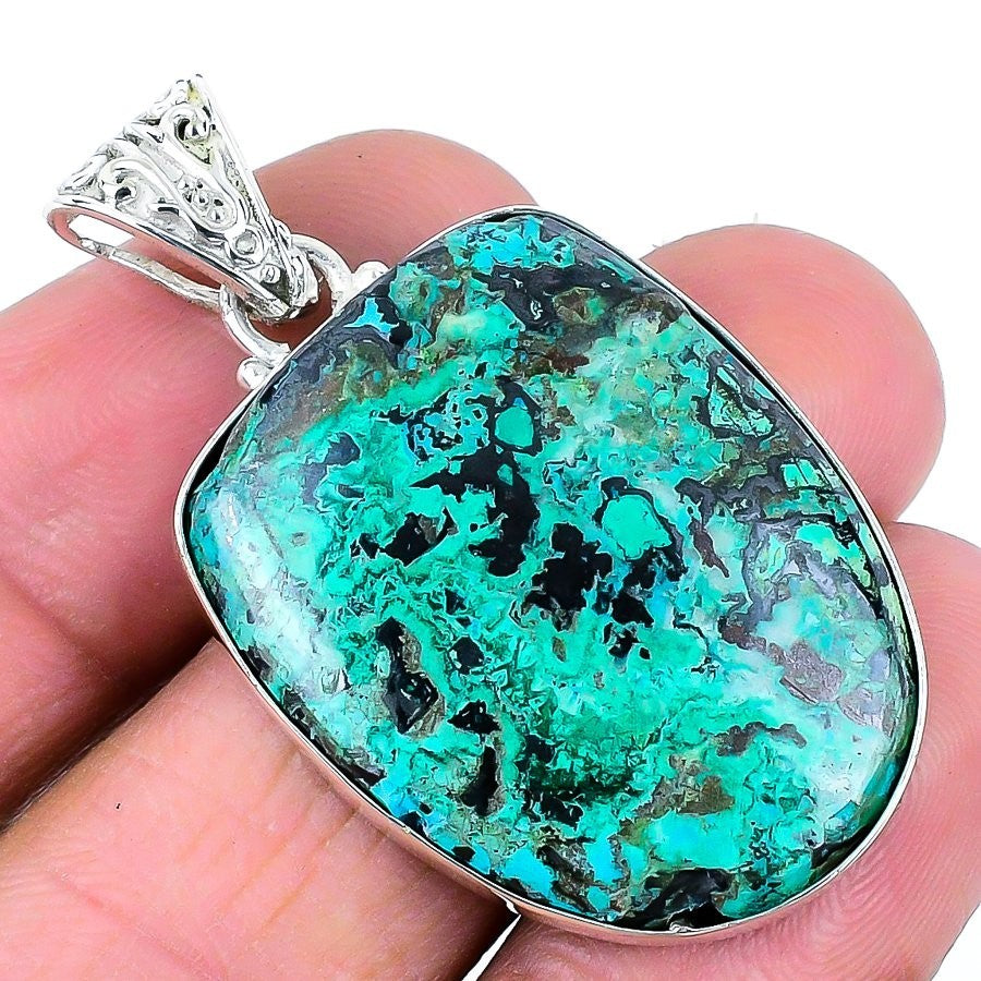 Throat Chakra Chrysocolla Gemstone Solid Sterling Silver Wedding Mother Pendant