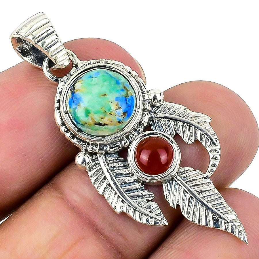 Throat Chakra Chrysocolla Gemstone Sterling Silver Ethnic Daughter Boho Pendant