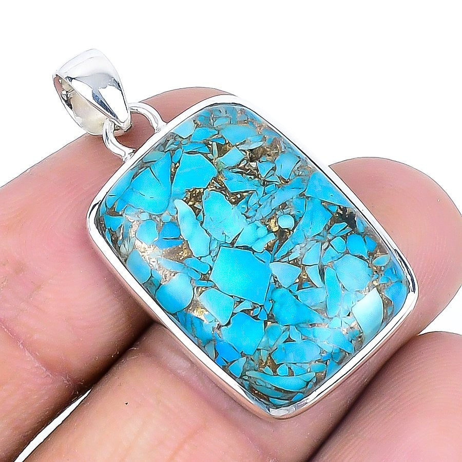 Throat Chakra Copper Blue Turquoise Gemstone 925 Silver Artisan Pendant Jewelry