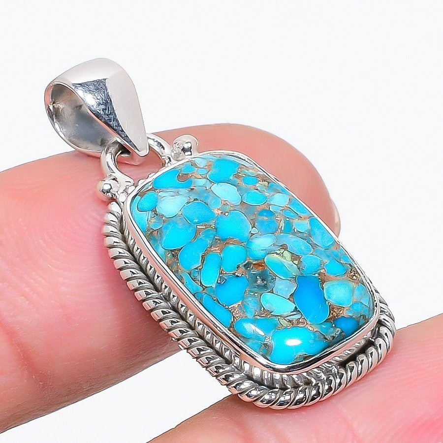 Throat Chakra Copper Blue Turquoise Gemstone New Pendant Jewelry Sterling Silver