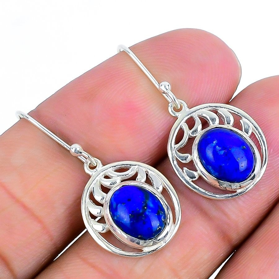 Throat Chakra Lapis Lazuli Stone Solid Silver Drop Bezel Hook Earrings Jewelry