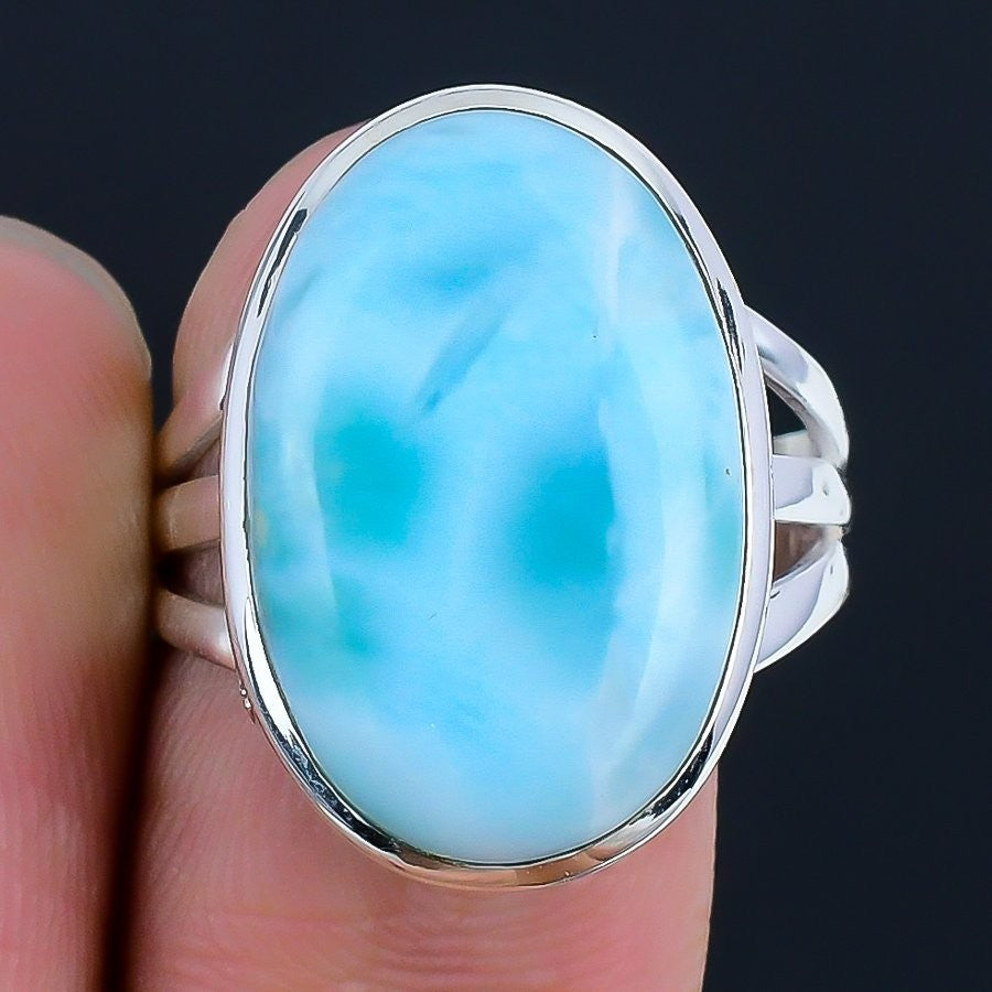 Throat Chakra Larimar Stone 925 Silver Wife Handcrafted Statement Wedding Ring