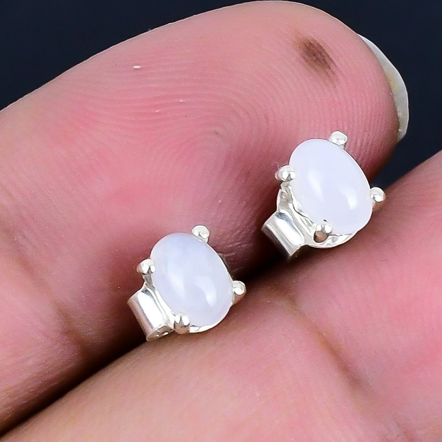 Throat Chakra Natural Aqua Chalcedony 925 Sterling Silver Stud Earrings Jewelry