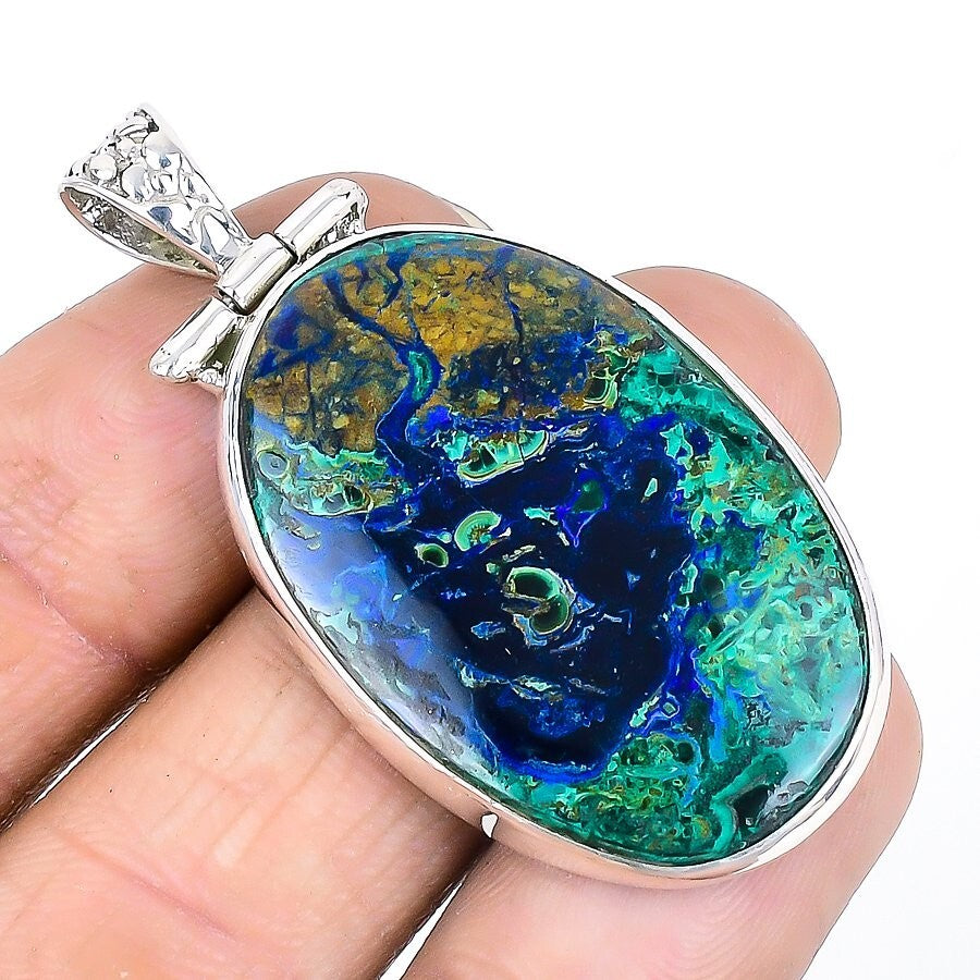 Elegant Throat Chakra Natural Azurite Malachite 925 Solid in