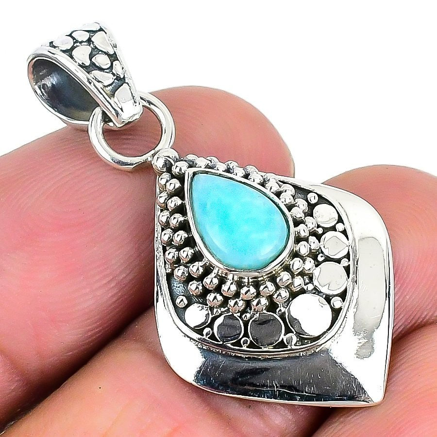 Throat Chakra Natural Larimar Solid Sterling Silver Mother Boho Pendant Jewelry
