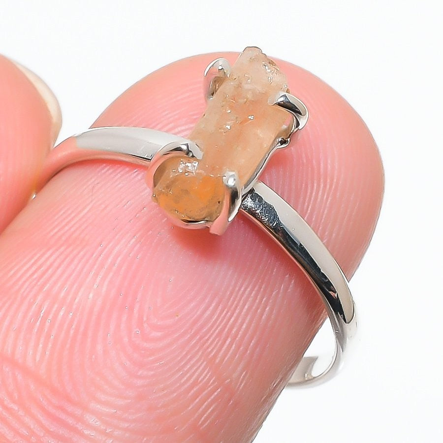 Throat Chakra Natural Orange Kyanite 925 Silver Cluster Wife Wedding Ring Size 8