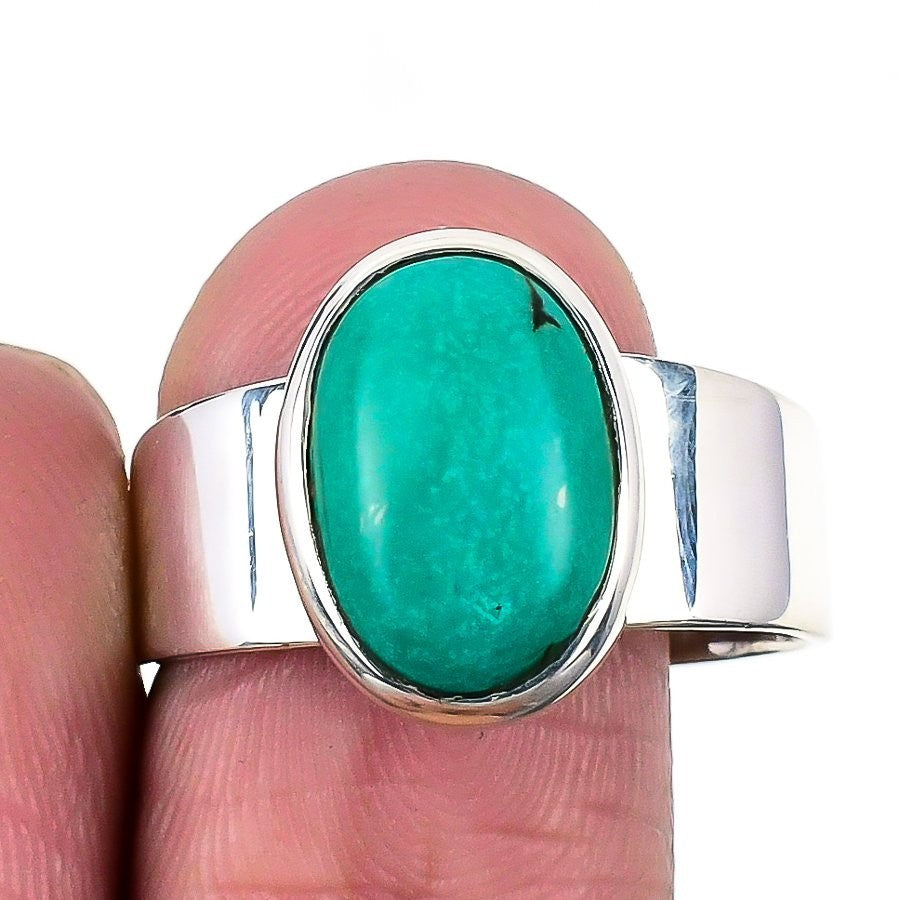 Throat Chakra Natural Tibetan Turquoise 925 Solid Silver Statement Ring US 10.5