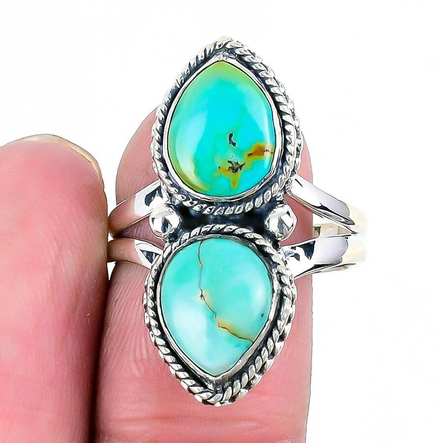 Throat Chakra Natural Turquoise Solid Silver Ethnic Cluster Boho Ring Size 10