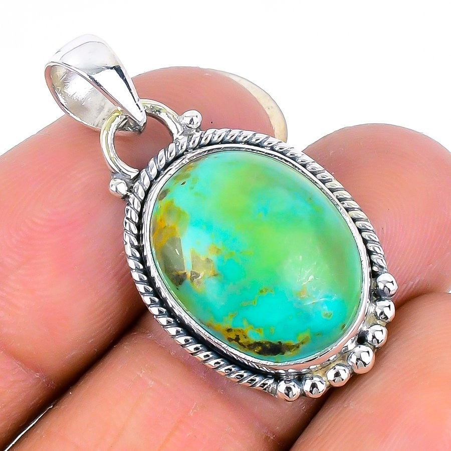 Throat Chakra Tibetan Turquoise Stone Birthday Wife Pendant Jewelry Solid Silver