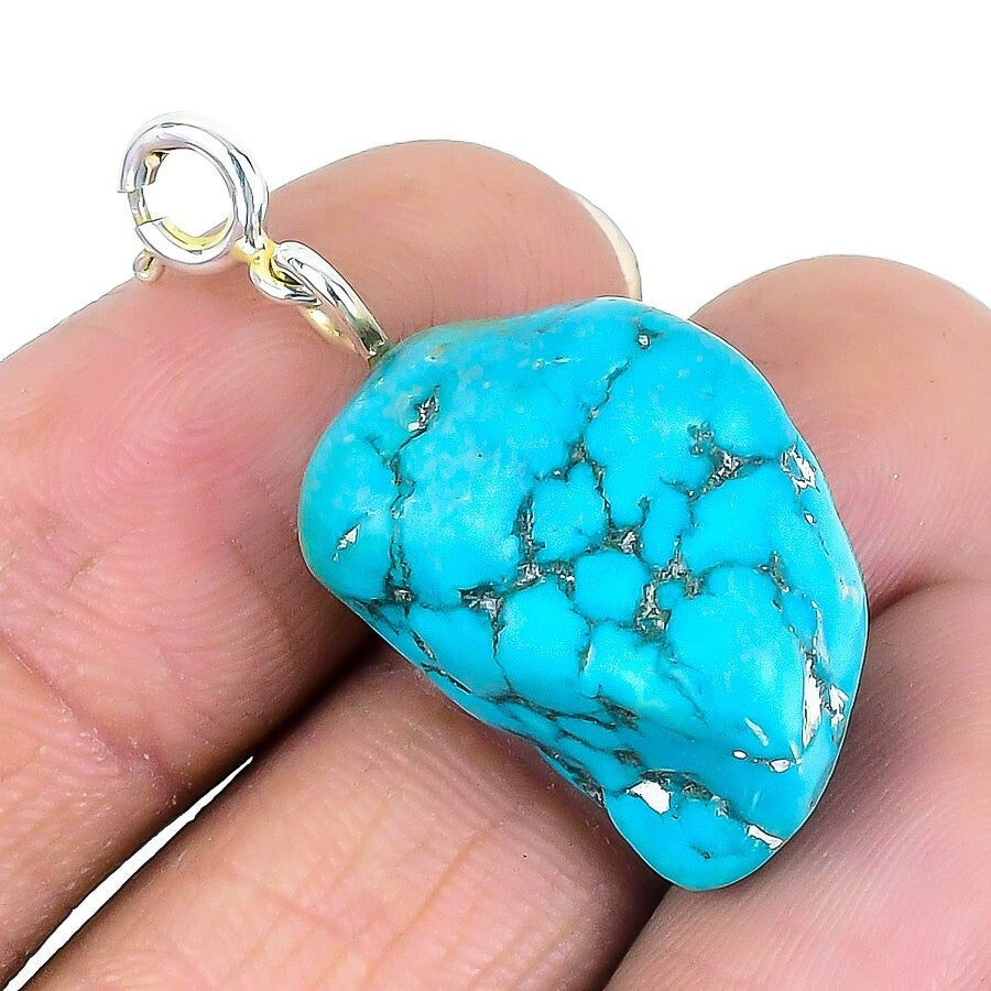 Throat Chakra Tibetan Turquoise Stone Solid Sterling Silver New Pendant Jewelry
