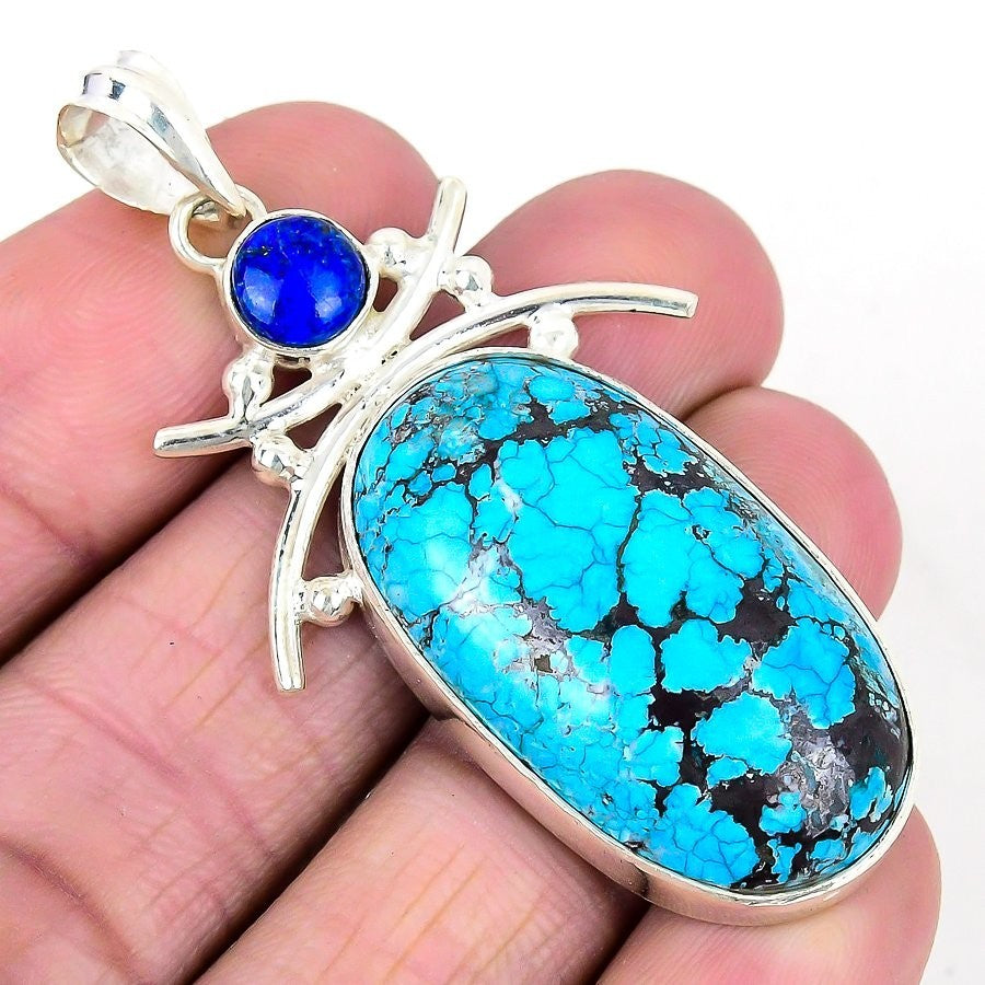 Tibetan Turquoise Gemstone 925 Silver Sister Wedding Channel Set Pendant Jewelry