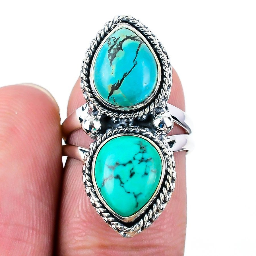 Tibetan Turquoise Gemstone 925 Silver Statement Artisan New Ring Jewelry US 6.5