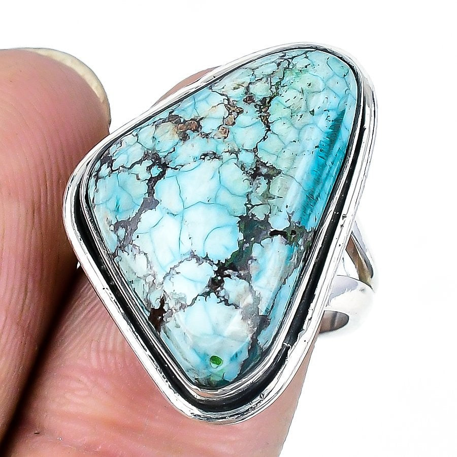 Tibetan Turquoise Gemstone 925 Solid Silver Statement Anniversary Ring Size 8