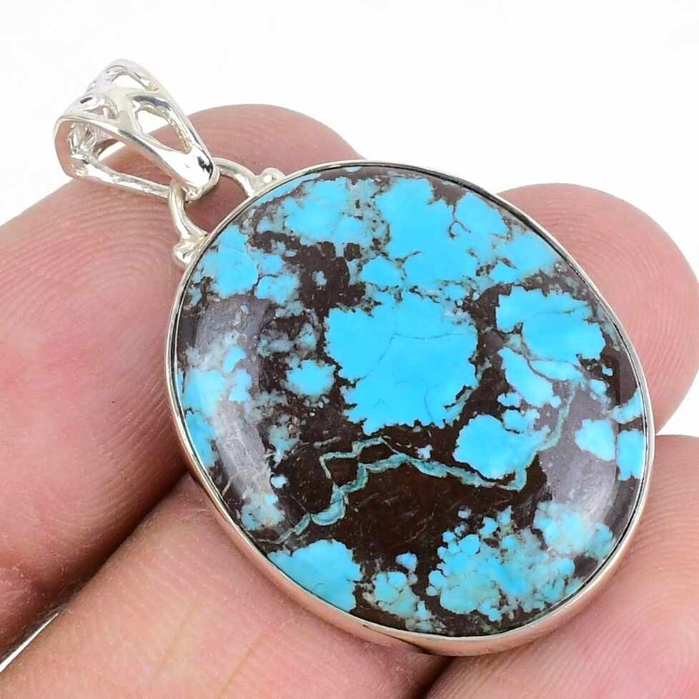 Tibetan Turquoise Gemstone Birthday Mother Pendant Jewelry Solid Sterling Silver
