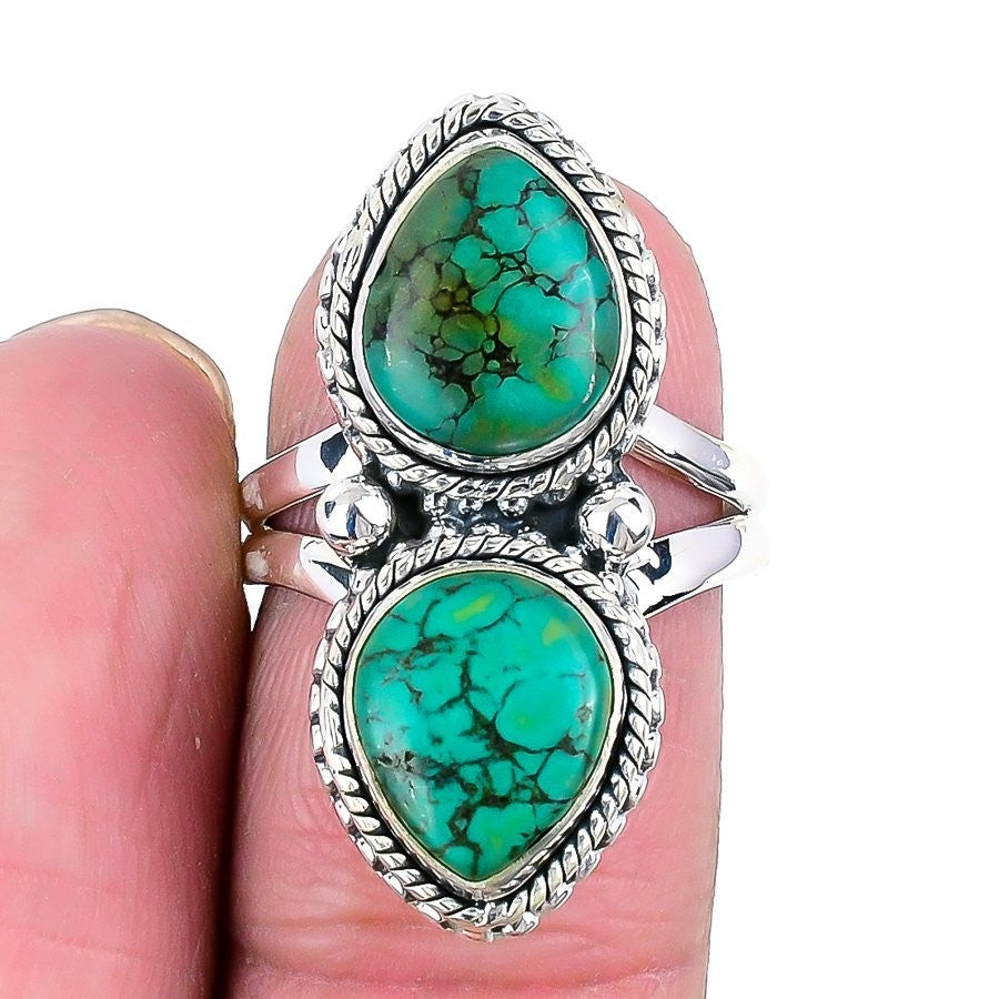 Tibetan Turquoise Gemstone Boho Cluster Sister Ring Size 7 Solid Sterling Silver