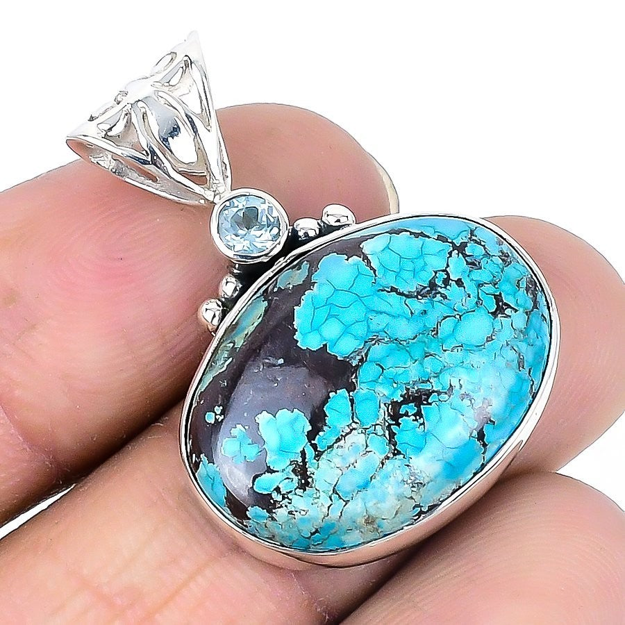 Tibetan Turquoise Stone 925 Silver Sister Best Daughters Gift Art Deco Pendant