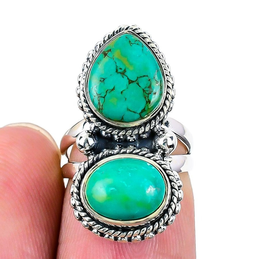 Tibetan Turquoise Stone 925 Solid Silver Birthday Statement Ring Jewelry US 3.5