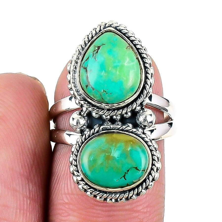 Tibetan Turquoise Stone 925 Sterling Silver Statement Sister Ring Jewelry Size 7