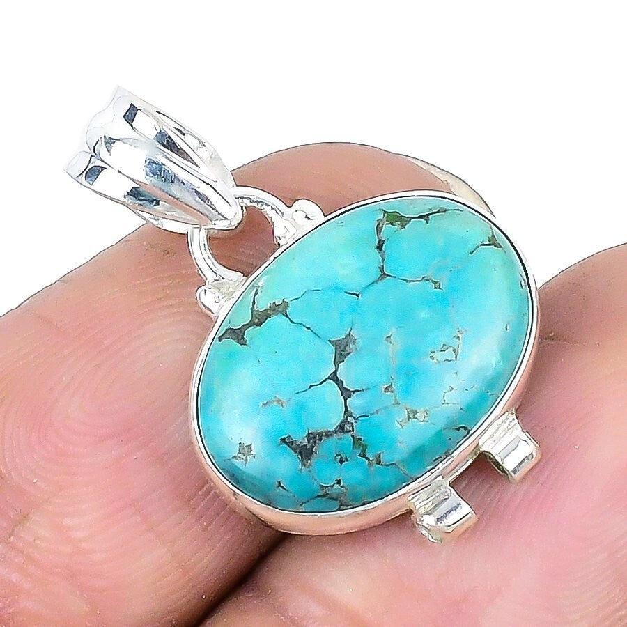 Tibetan Turquoise Stone Mother Anniversary Ethnic Easter Pendant Sterling Silver