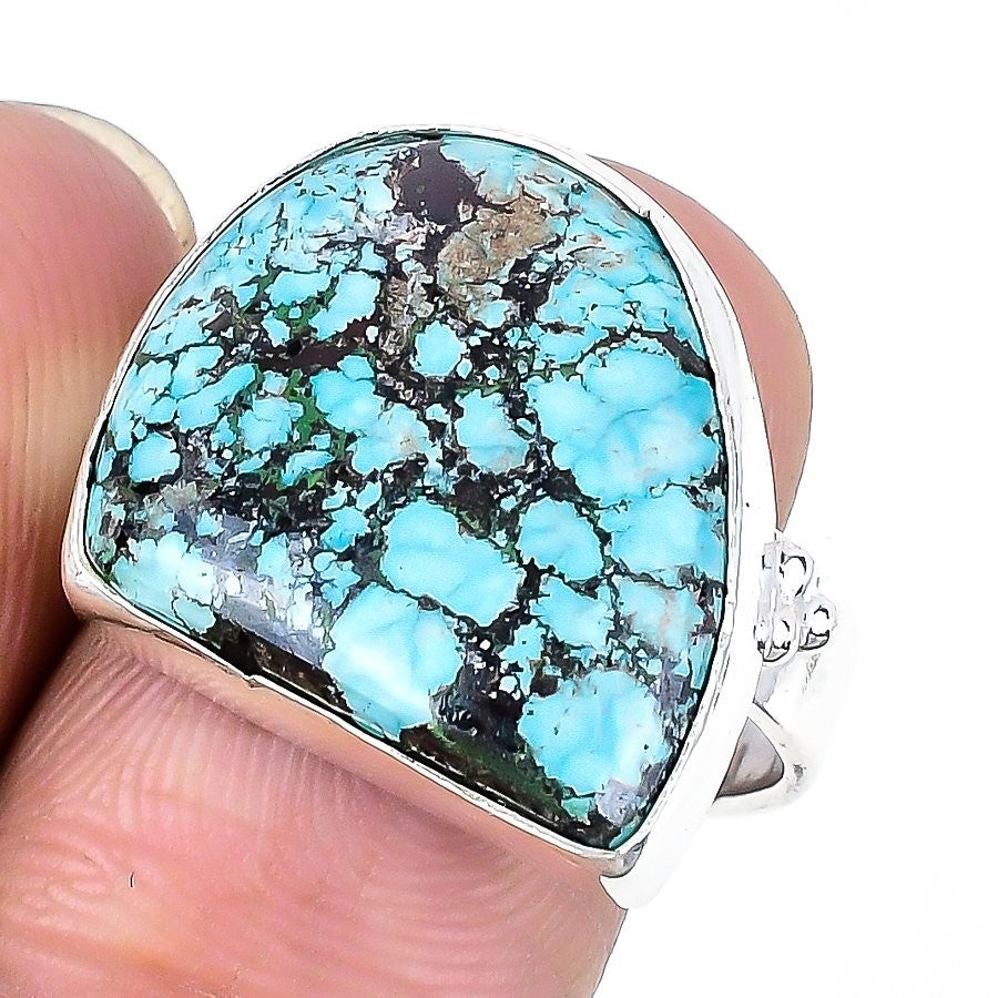 Tibetan Turquoise Stone Solid Sterling Silver Statement Daughter Gift Ring US 8