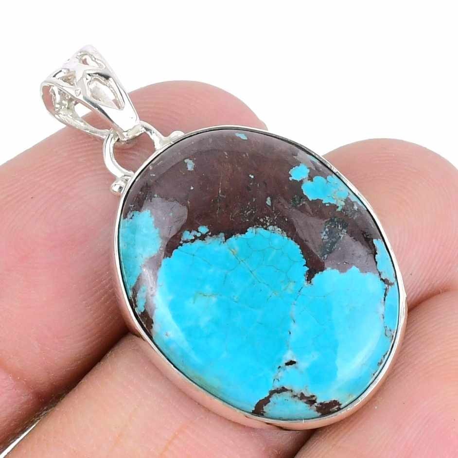 Tibetan Turquoise Stone Solid Sterling Silver Throat Chakra Unique Boho Pendant