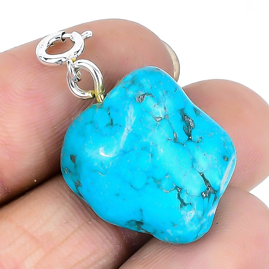 Tibetan Turquoise Stone Unique Throat Chakra Sister Pendant 925 Sterling Silver