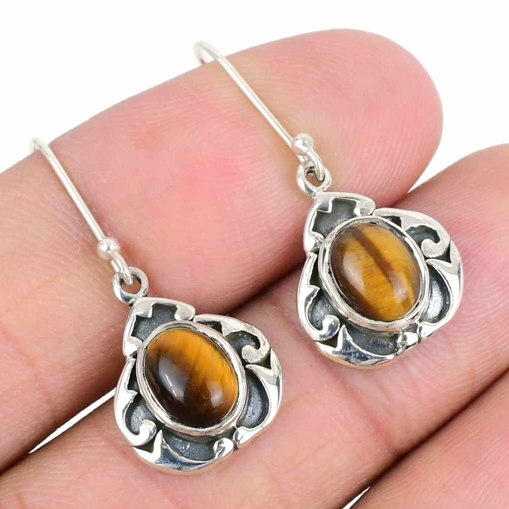 Tiger Eye Stone Solid Silver Hook Wedding Artisan Dangling Wife Earrings Jewelry