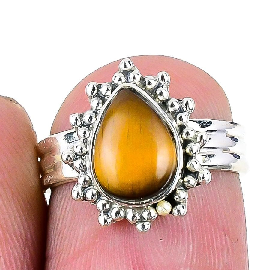 Tiger Eye Stone Solid Sterling Silver Handmade New Statement Ring Jewelry US 0.5