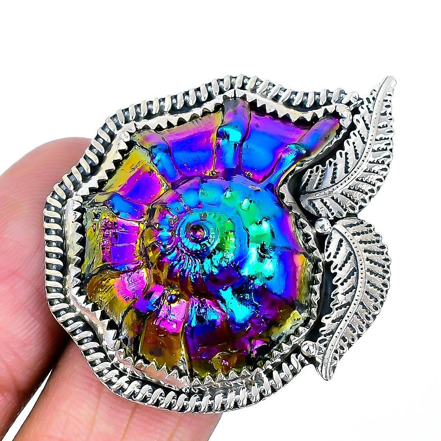 Elegant Titanium Ammonite Shell Gemstone Solid Sterling Silv