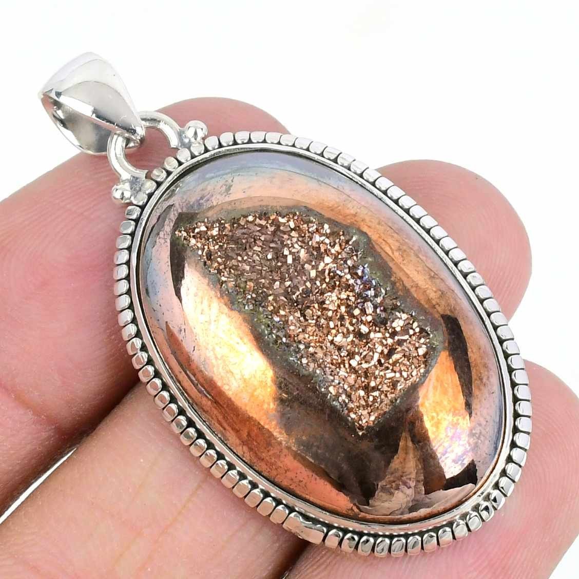 Titanium Aura Druzy Gemstone Sterling Silver Daughters Day Wife Wedding Pendant