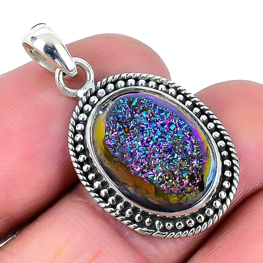 Titanium Druzy Gemstone 925 Solid Silver Unique Daughter Anniversary New Pendant