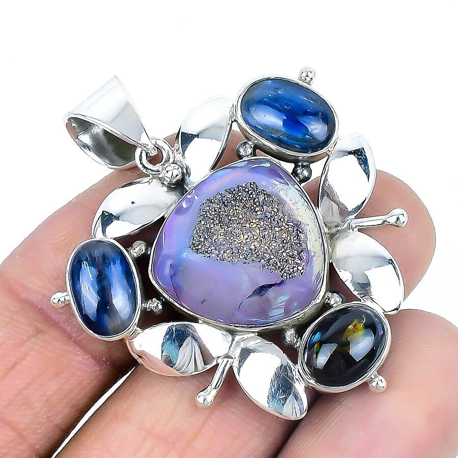 Titanium Druzy Gemstone Artisan Trendy New Pendant Jewelry Solid Sterling Silver