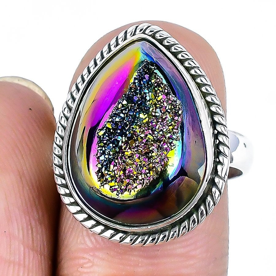Titanium Druzy Stone Sterling Silver Engagement Statement Ring Jewelry US 8.5