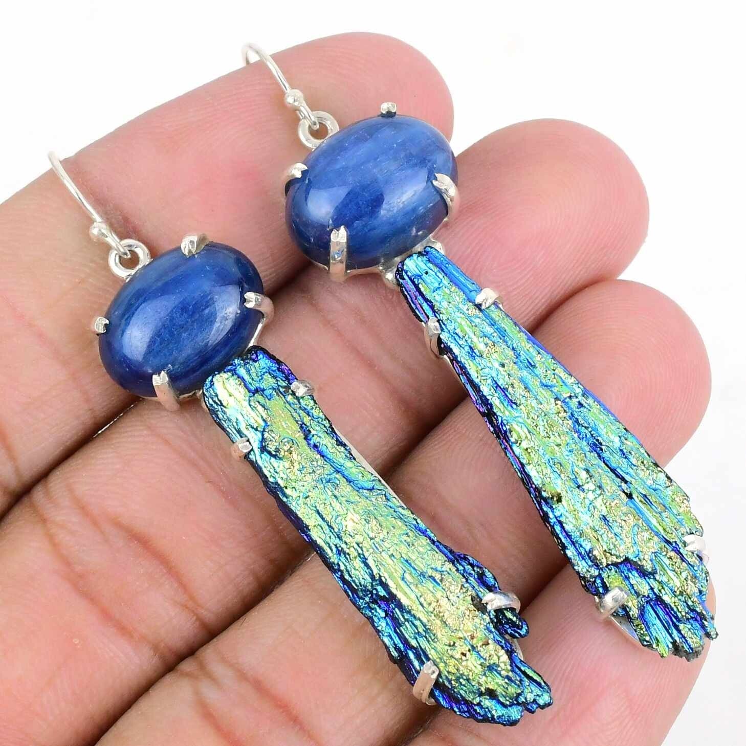 Titanium Kyanite Stone Handmade Dangling Mothers Gift Boho Earrings Solid Silver