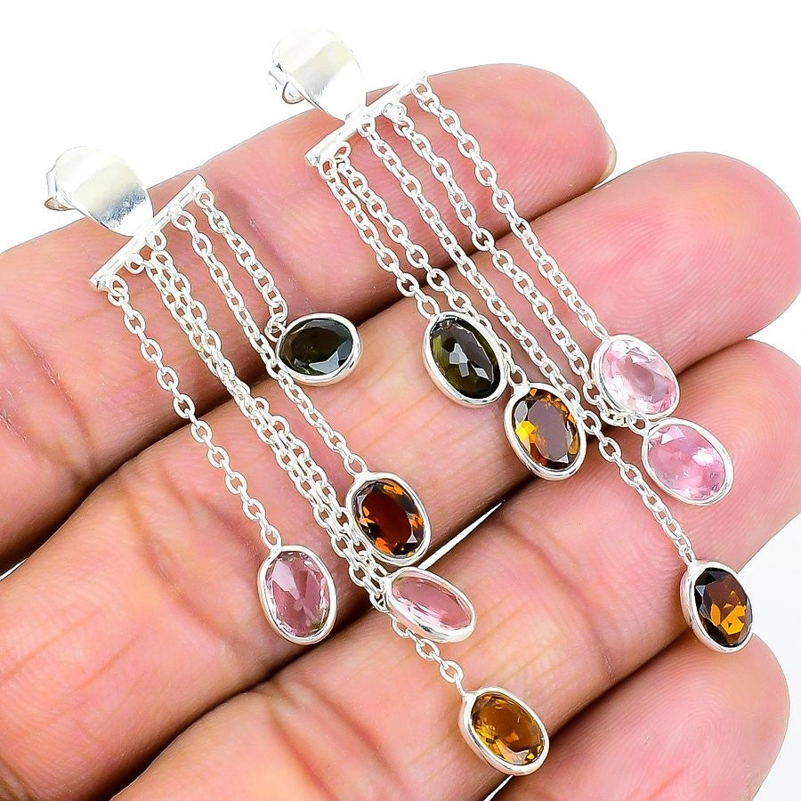 Tourmaline Gemstone Dangle Handcrafted Hook Earrings Jewelry 925 Sterling Silver
