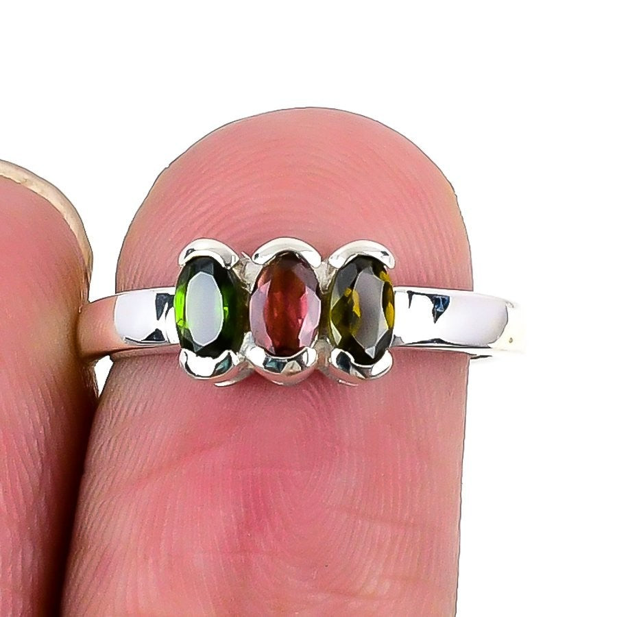Tourmaline Gemstone Solid Sterling Silver Engagement Statement Wife Ring Size 7