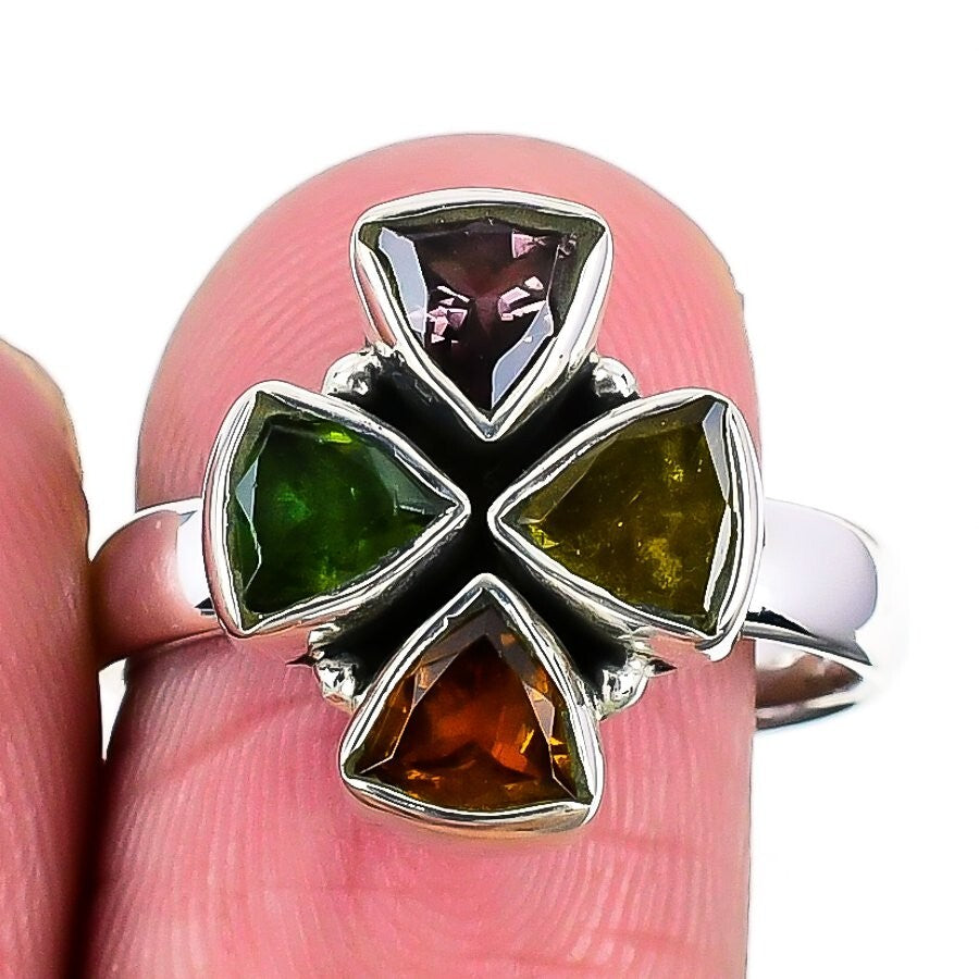 Tourmaline Stone 925 Sterling Silver October Cluster Mothers Gift Ring Jewelry