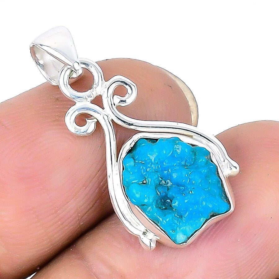 Turquoise Druzy Gemstone Sterling Silver Wedding Handmade Trendy Pendant Jewelry