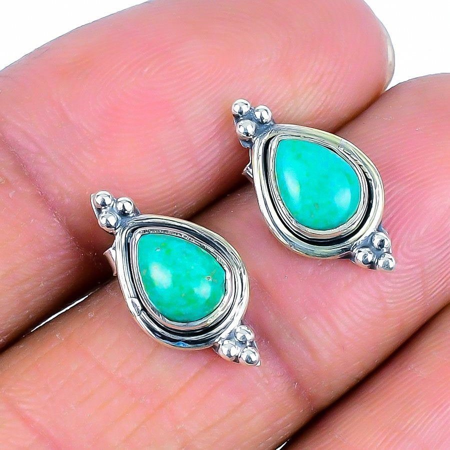 Turquoise Gemstone Sterling Silver Engagement Stud Elegant Ethnic Wife Earrings