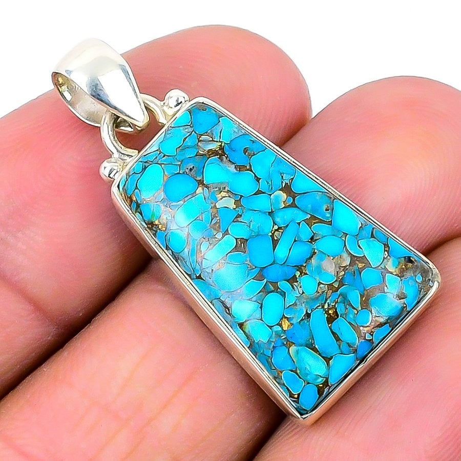 Turquoise In Pyrite Gemstone Daughter Unique Handcrafted Pendant Sterling Silver