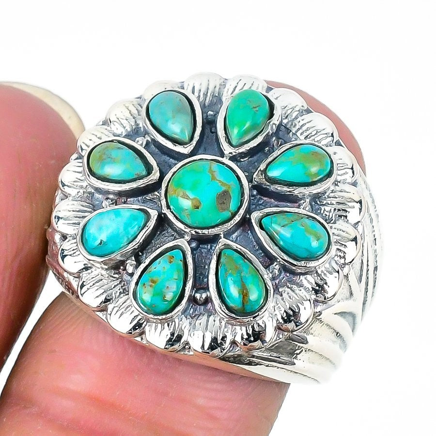 Turquoise Stone 925 Sterling Silver Artisan Statement Wife December Ring US 8