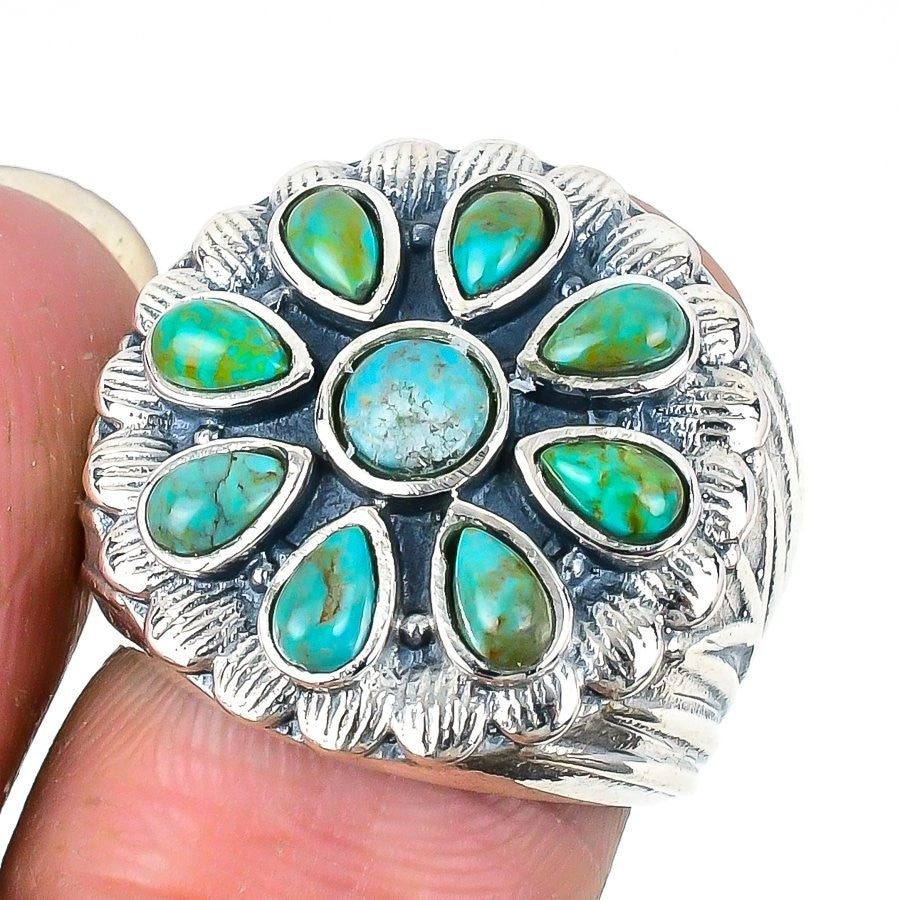 Turquoise Stone Solid Silver Anniversary Statement Throat Chakra New Ring Size 7