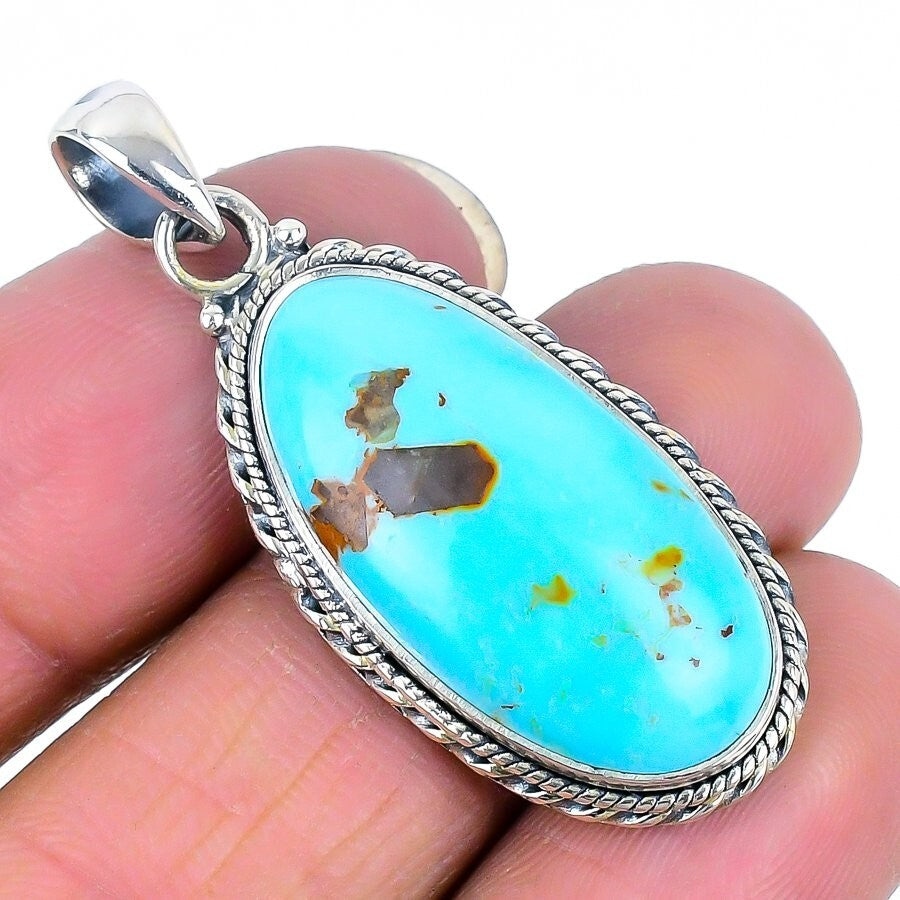 Turquoise Stone Solid Sterling Silver Wedding Throat Chakra Boho Pendant Jewelry